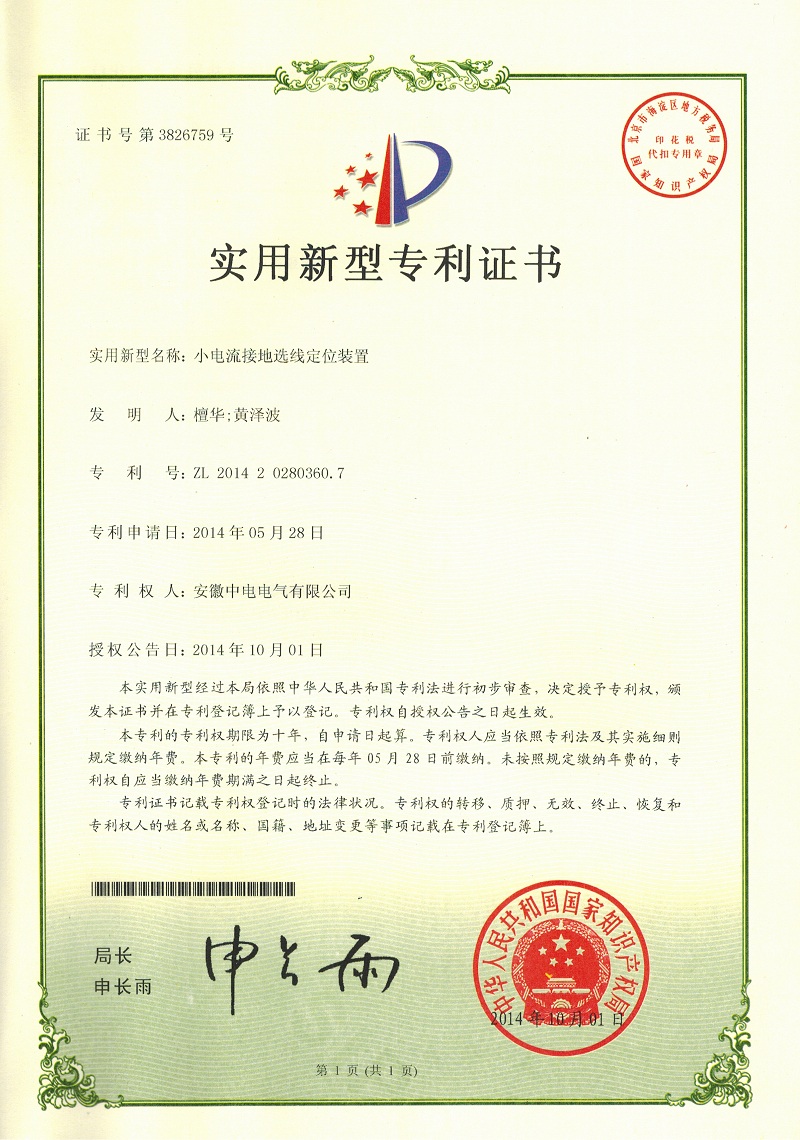 - 實用新型專利證書